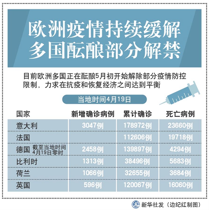 圖表:綜合消息:歐洲疫情持續(xù)緩解 多國(guó)醞釀部分解禁 新華社發(fā) 邊紀(jì)紅 制圖
