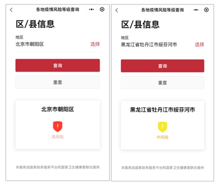 記者了解到,為助力疫情防控,國家政務服務平臺聯合國家衛生健康委推出的“疫情風險等級查詢”服務,可以為公眾提供最新的疫情等級信息查詢服務。用戶只需輸入需查詢的目的地,就能一鍵查詢該地疫情風險情況,并能夠具體查詢到各地區、縣一級的風險等級,為復工復產、人員流動提供實時、權威的信息參考。目前,數據在不斷更新完善,能夠實現動態更新。