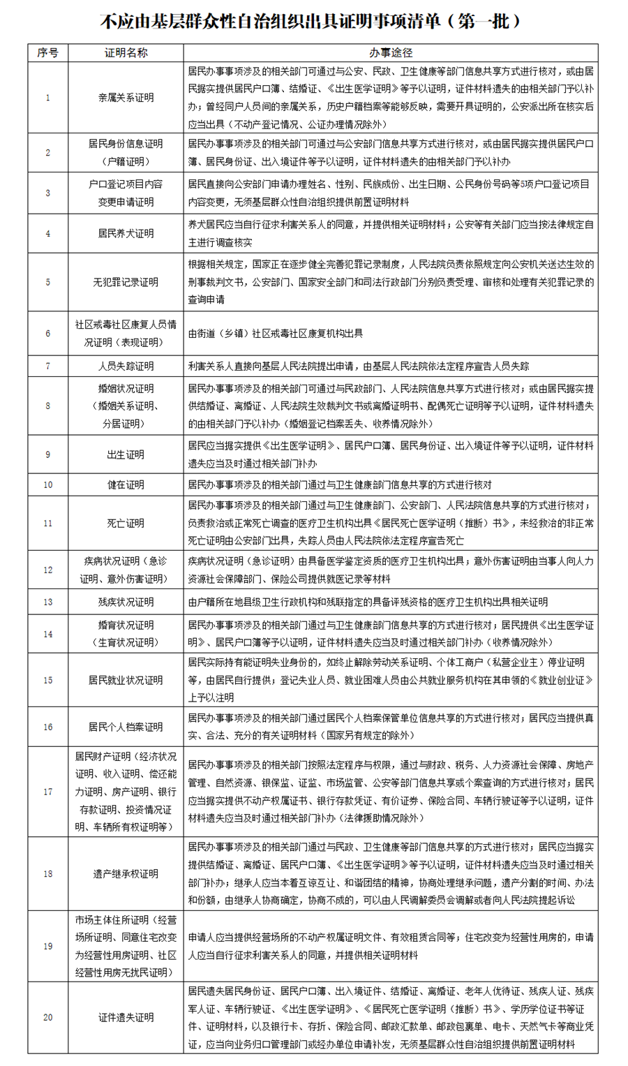 附件:不應(yīng)由基層群眾性自治組織出具證明事項(xiàng)清單(第一批)