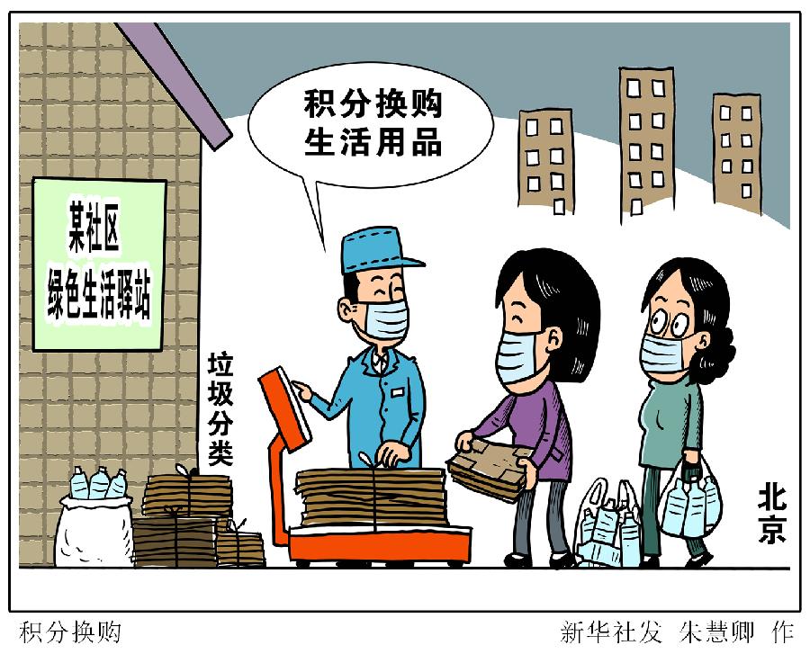 新華社北京5月3日電? 題:積分換購生活用品 “兩桶一袋”征求民意——北京部分社區(qū)垃圾分類見聞