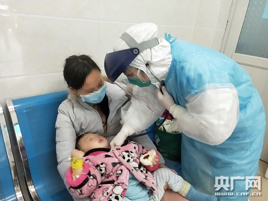 吳婷為發熱的兒童診治(央廣網發 通訊員供圖)