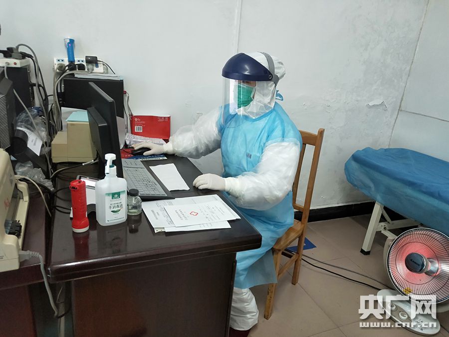 吳婷穿著防護服檢查病歷資料(央廣網發 通訊員供圖)