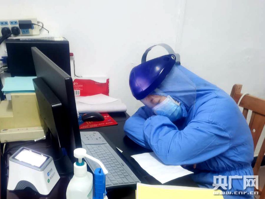 疲憊的吳婷趴在桌上睡著了(央廣網發 通訊員供圖)