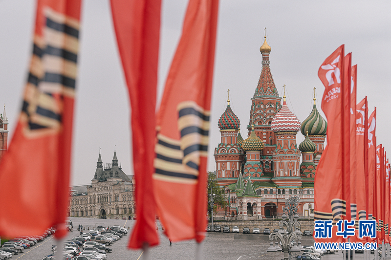 5月4日,在俄羅斯首都莫斯科,紅場附近道路裝飾著慶祝勝利日的旗幟。俄羅斯總統普京4月16日宣布,因新冠疫情俄將推遲原定于5月9日舉辦的俄紀念衛國戰爭勝利75周年閱兵式。 為遏制新冠疫情蔓延,3月30日起莫斯科和俄多城實施居家隔離制度。 新華社發(葉甫蓋尼·西尼岑攝)