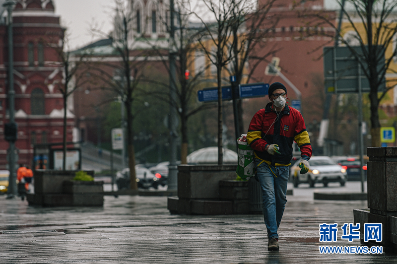 5月4日,在俄羅斯首都莫斯科,一名男子佩戴口罩出行。 為遏制新冠疫情蔓延,俄羅斯各地大都采取隔離措施,要求民眾避免非必要外出。 新華社發(葉甫蓋尼·西尼岑攝)