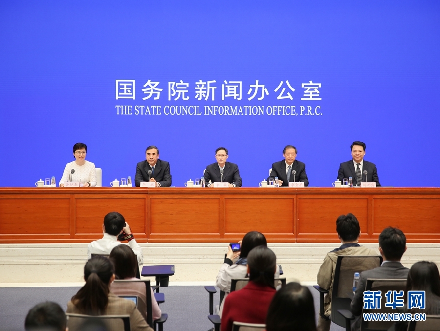 這是5月9日拍攝的國務院政策例行吹風會現場。新華社發(焦非攝)
