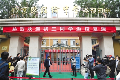 初三開學不是簡單的高三開學的復制。北京市教委新聞發言人李奕坦言,由于北京的初中學生多,初中校的類型多,初三開學難度相對更大。“在防疫標準上不僅不能降低,還要針對學校的不同特點,完善具體方案。”