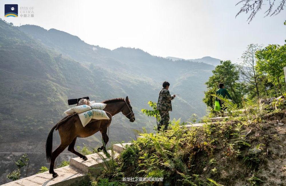 托坪村小組不通路,只有一條很陡的人馬驛道——近60度的斜坡路。生活物資進(jìn)山全靠人背馬馱。