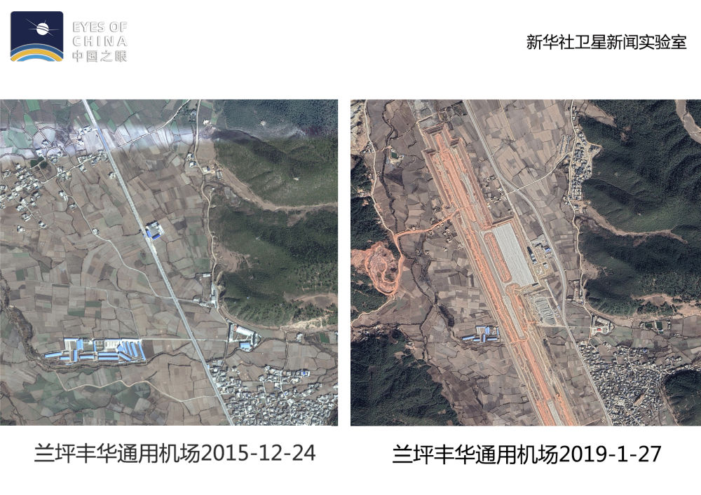 ↑衛(wèi)星記錄了蘭坪豐華通用機(jī)場從無到有的建設(shè)過程。