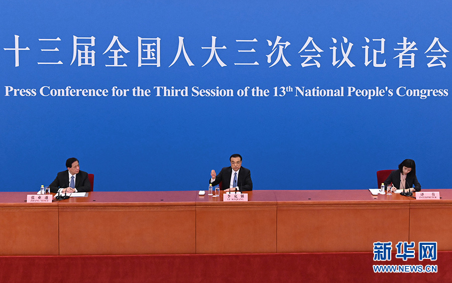 5月28日下午,十三屆全國人大三次會議在北京人民大會堂舉行記者會,國務院總理李克強應大會發言人張業遂的邀請出席記者會,并回答中外記者提問。 新華社記者 姚大偉 攝