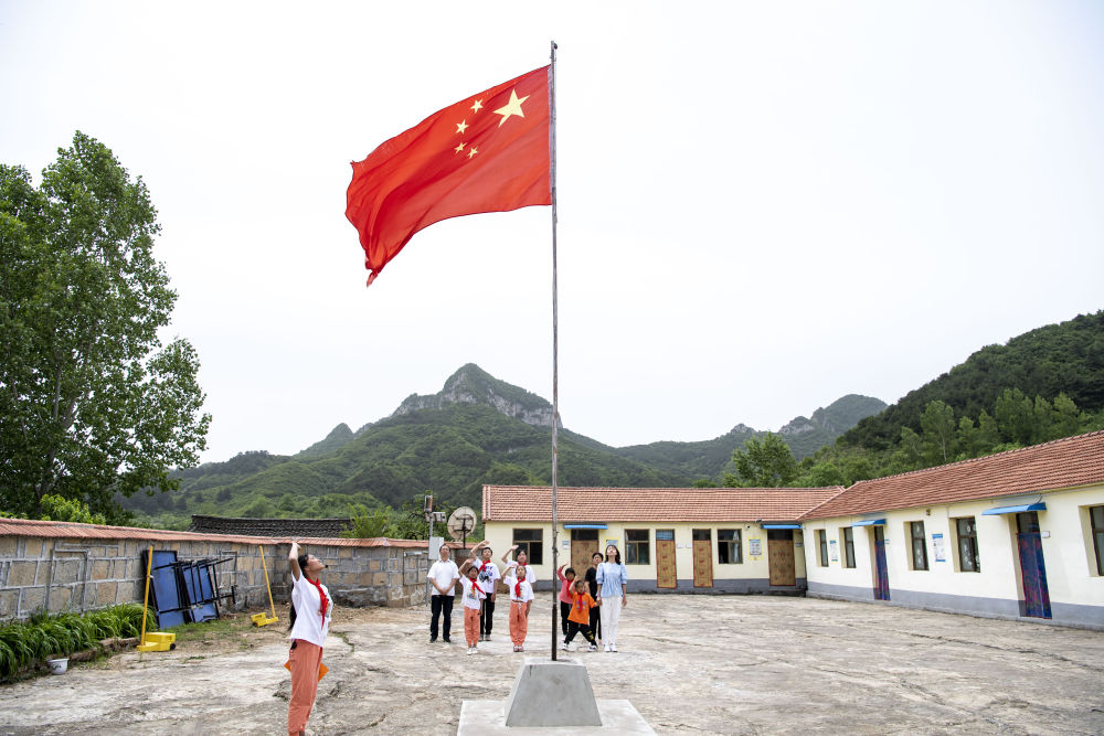 隨著幾位家住大山深處的同學陸續趕來,馬武寨寄宿制小學的全體師生舉行了疫情發生以來的首次升國旗儀式。
