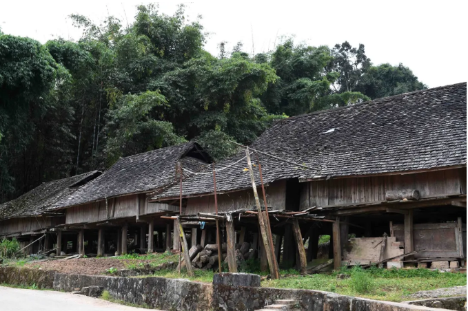 云南省西盟佤族自治縣勐梭鎮班母村老寨(上圖)和新房(下圖)杜涓涓 攝