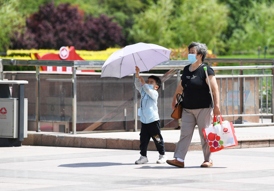 6月3日,濟南市民在烈日下行走。新華社記者 王凱 攝