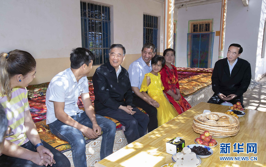 6月8日至12日,中共中央政治局常委、全國政協主席汪洋在新疆調研。這是6月11日,汪洋在喀什調研時與當地村民親切交談。 新華社記者 李濤 攝