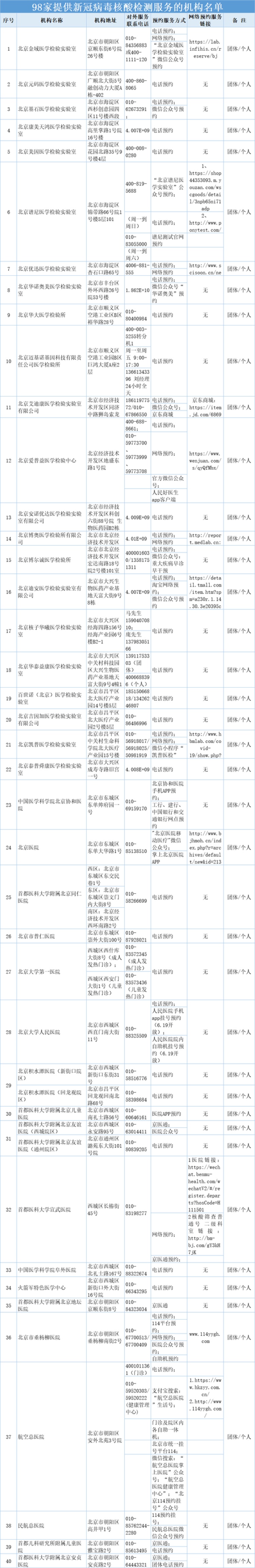 附:98家提供新冠病毒核酸檢測服務(wù)的機(jī)構(gòu)名單