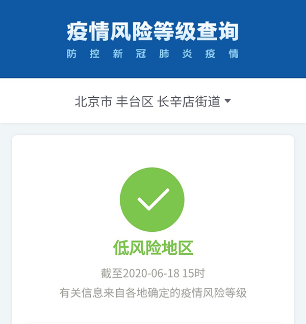 不過,今天有一處調整:豐臺區長辛店鎮升級為中風險地區,而長辛店街道“降級”為低風險地區。
