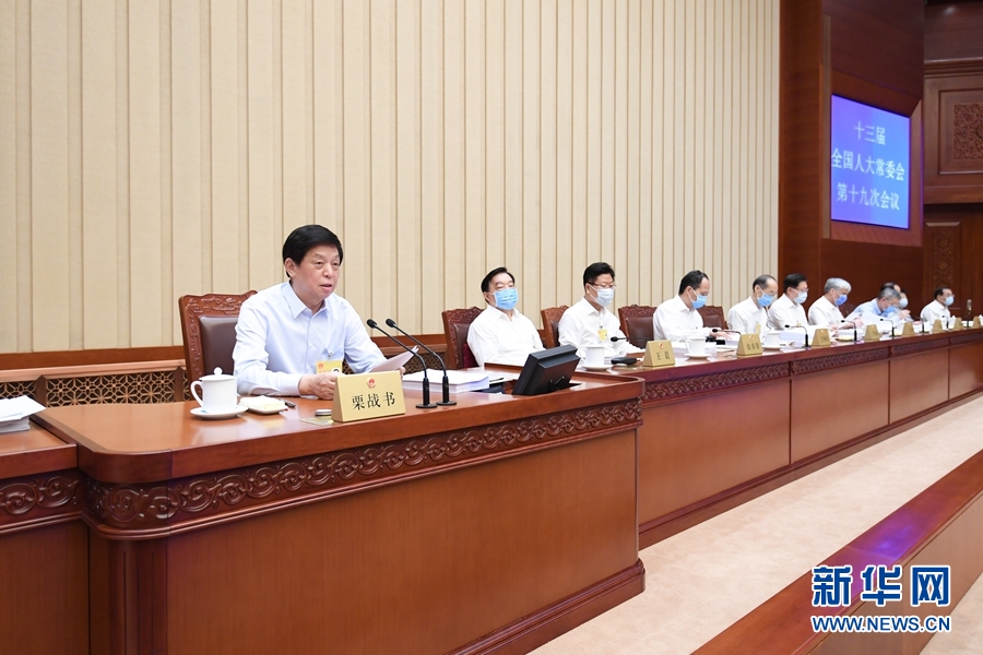 6月18日,十三屆全國人大常委會第十九次會議在北京人民大會堂舉行第一次全體會議,栗戰書委員長主持。 新華社記者 申宏 攝