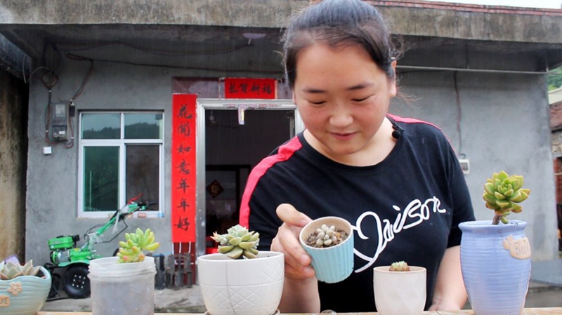 在尋烏縣丹溪鄉(xiāng)岑峰村,張荷花家讓記者眼前一亮——小院就在車來車往的縣道旁,本該積灰的地方卻沒啥塵土。房子雖是農村少見的平房,但屋內收拾得井井有條。低矮的院墻上,擺放著長勢喜人的多肉、蟹爪蓮、長壽花、玫瑰等植物,透露出主人的生活情趣。