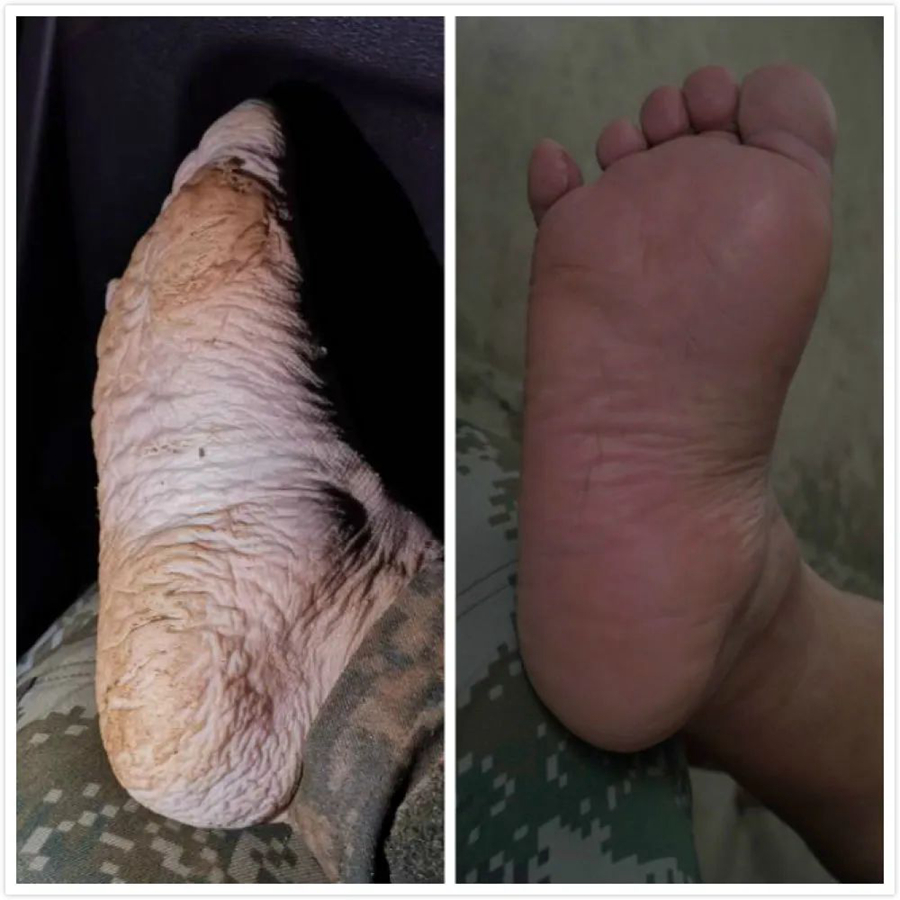 13日,一只“抗洪大腳”經新華社報道后在很多人的微信朋友圈刷屏,讓網友大呼“心疼”。有網友留言稱:“這是我見過最好看的腳。”也有網友問:“這是誰的腳?”