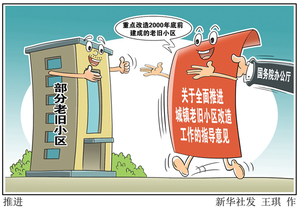 新華社北京7月20日電 國務院辦公廳日前印發《關于全面推進城鎮老舊小區改造工作的指導意見》(以下簡稱《意見》),要求按照黨中央、國務院決策部署,全面推進城鎮老舊小區改造工作,滿足人民群眾美好生活需要,推動惠民生擴內需,推進城市更新和開發建設方式轉型,促進經濟高質量發展。