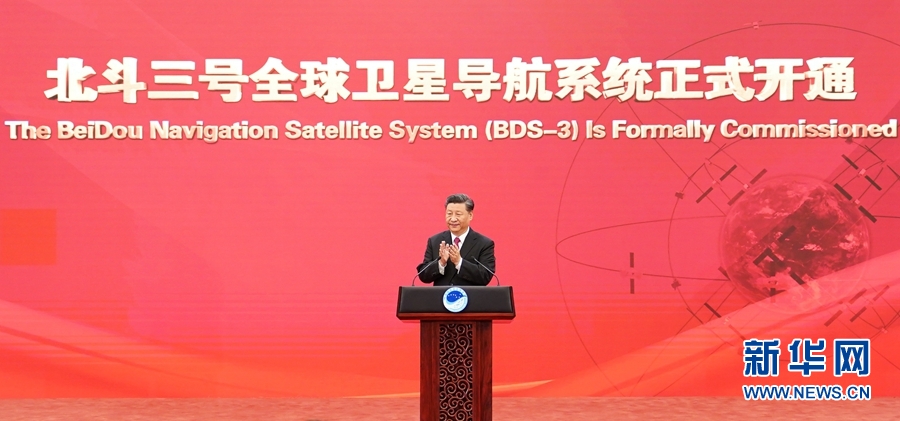 7月31日上午,北斗三號全球衛星導航系統建成暨開通儀式在北京舉行。中共中央總書記、國家主席、中央軍委主席習近平出席儀式,宣布北斗三號全球衛星導航系統正式開通。 新華社記者 李響 攝