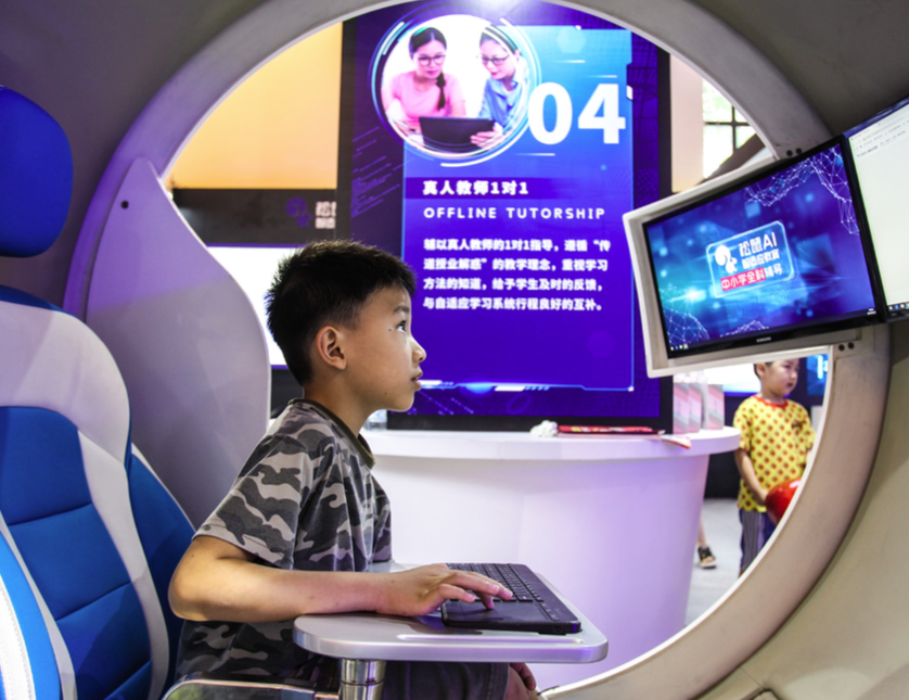 小觀眾在上海科博會(huì)體驗(yàn)一對(duì)一在線教育產(chǎn)品
