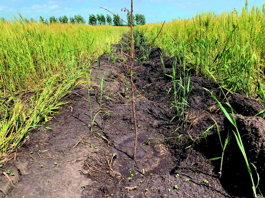 上圖:8月2日,陳巴爾虎旗特尼河林場大片麥田、油菜田,被鏟出一道道黑綠相間的“斑馬線”。中圖:8月2日,陳巴爾虎旗特尼河林場一處被毀的麥田。下圖:8月2日,陳巴爾虎旗特尼河林場一處被毀的麥田里,一些突擊種上的樹苗已經(jīng)枯萎。 本報(bào)記者王靖攝