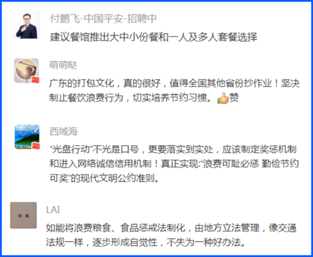 總書記強調,要加強立法,強化監管,采取有效措施,建立長效機制,堅決制止餐飲浪費行為。網友們就此積極獻計獻策。