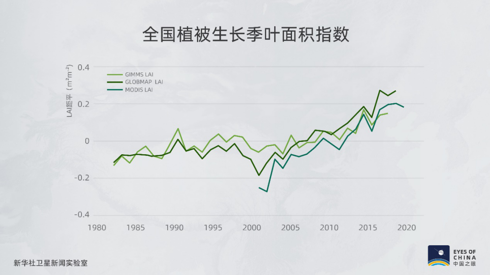 北京大學城市與環境學院教授樸世龍的研究顯示:相較于上世紀八九十年代,中國“變綠”速度加快,而全球變綠趨勢減緩,這和中國植樹造林等生態工程密切相關。