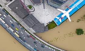 8月19日早晨,應急人員在珠海情侶路搶險作業。新華社發
