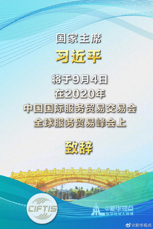 習(xí)近平將在2020年中國國際服務(wù)貿(mào)易交易會(huì)全球服務(wù)貿(mào)易峰會(huì)上致辭