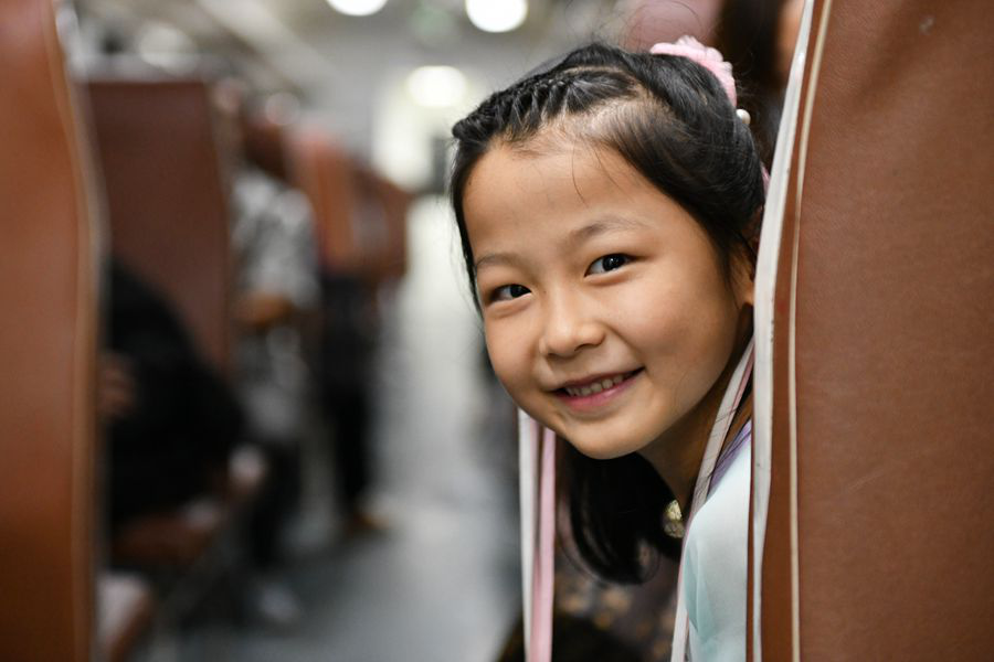 開學(xué)前夕,從寧強(qiáng)站上車前往漢中的小學(xué)生旅客愉快乘車。(8月22日攝)