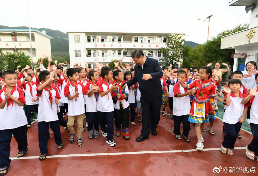 16日下午,正在湖南考察調研的習近平總書記來到郴州市汝城縣文明瑤族鄉第一片小學,走進四年級教室,同正在上思政課的同學們親切交流。同學們紛紛向習爺爺分享自己熟悉的長征故事,習近平聽了十分高興,連夸“講得好”。他說,作為“半條被子的故事”發生地,紅色基因要在你們身上得到體現。革命事業要一代一代傳下去,中華民族偉大復興將在今天的青少年一代手中實現。他把同學們比作“小樹苗”,將來會長成中華民族的參天大樹,希望同學們好好學習、天天向上,努力成長為社會主義建設者和接班人。 (文字記者張曉松、朱基釵 攝影記者李學仁、謝環馳)?