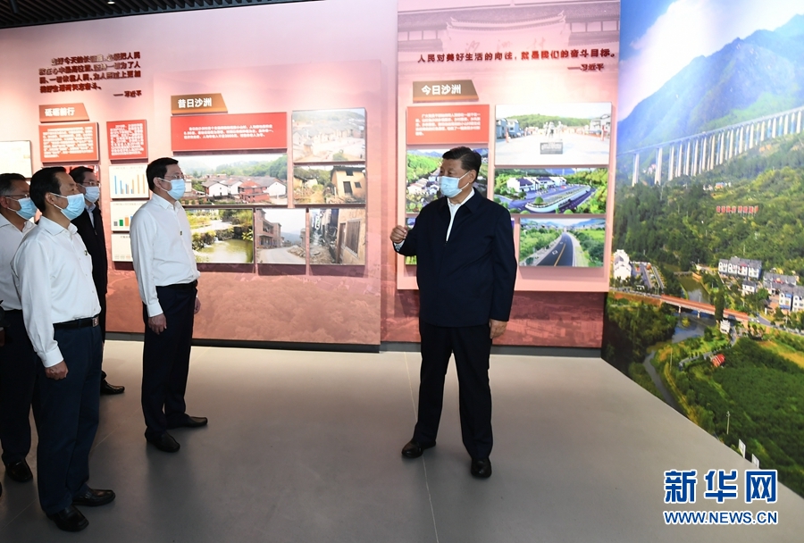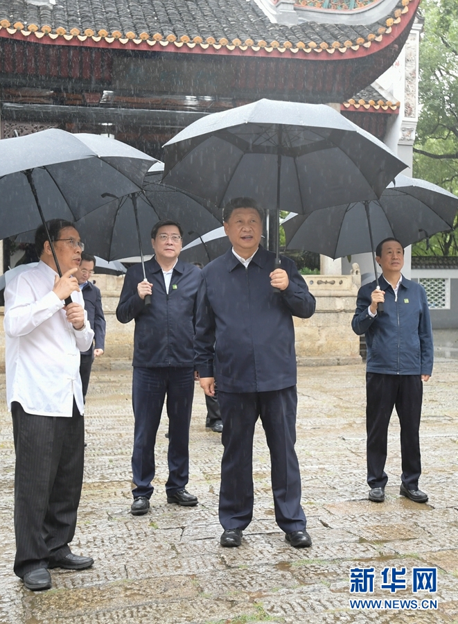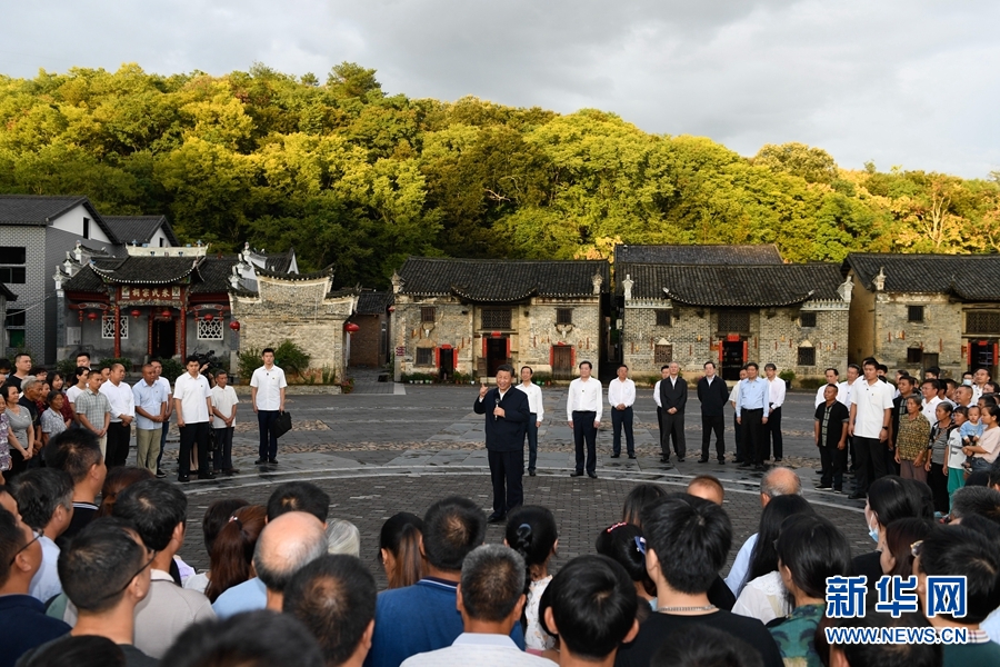 9月16日至18日,中共中央總書記、國家主席、中央軍委主席習近平在湖南考察。這是16日下午,習近平在郴州市汝城縣文明瑤族鄉沙洲瑤族村察看村容村貌,同村民親切交談。新華社記者 謝環馳 攝