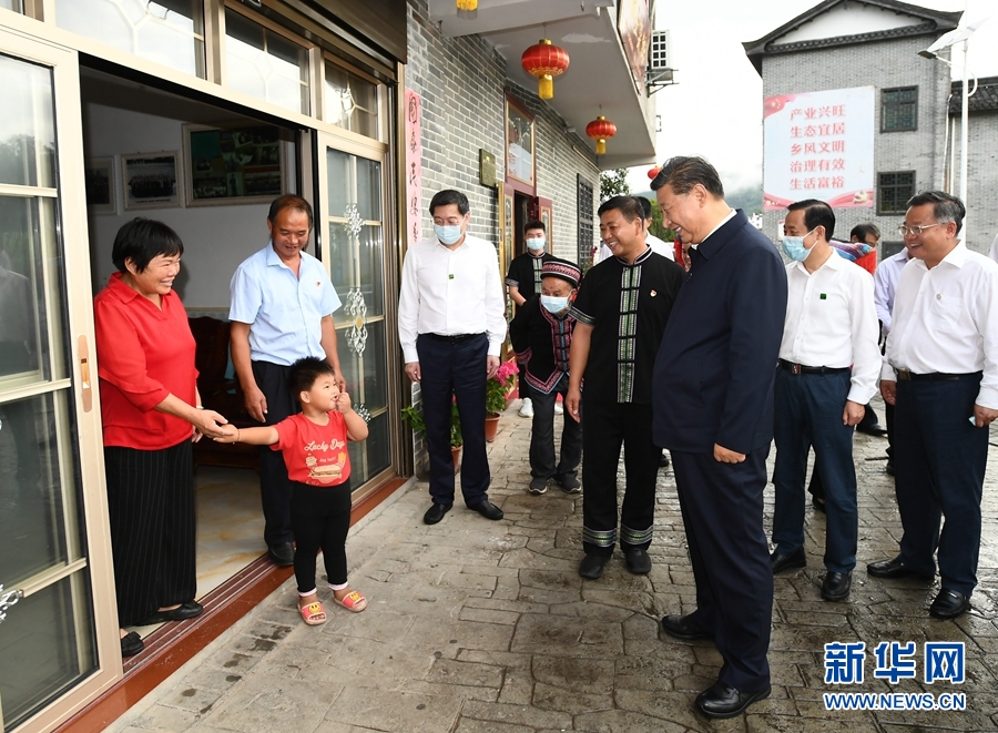 9月16日至18日,中共中央總書記、國家主席、中央軍委主席習近平在湖南考察。這是16日下午,在郴州市汝城縣文明瑤族鄉沙洲瑤族村,習近平同村民朱小紅一家拉家常。新華社記者 謝環馳 攝