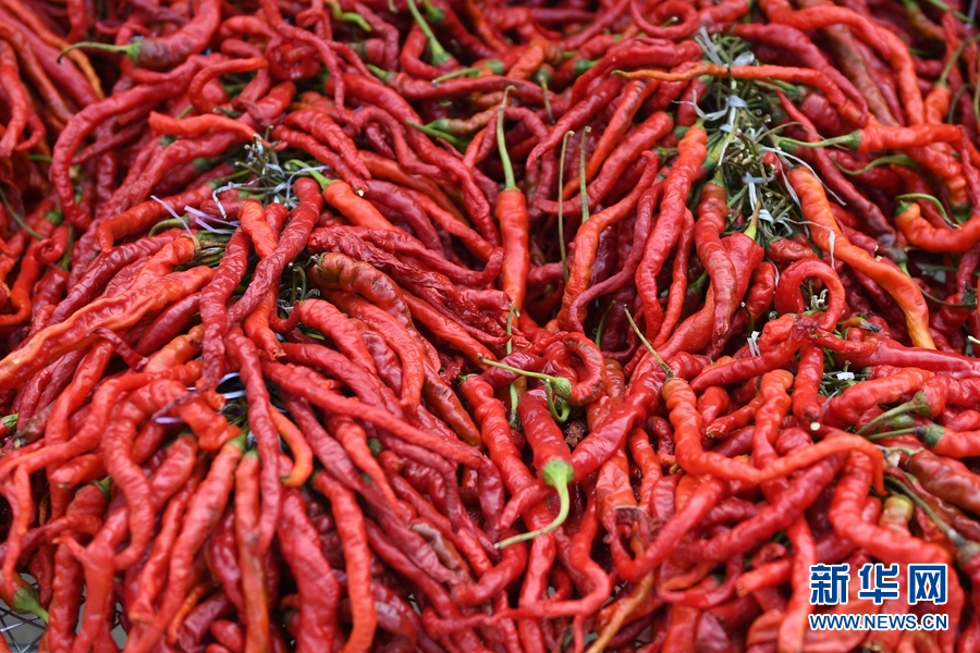 2020年慶祝中國農民豐收節暨循化縣消費扶貧“辣椒節”現場展示銷售的線辣椒。(新華網潘彬彬攝)