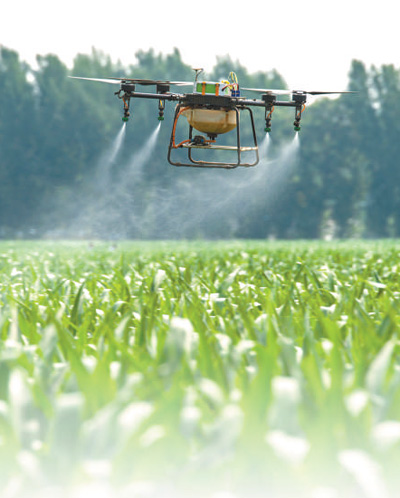 植保無人機通過遙控遠程噴施農藥,既適用于小麥、大豆、水稻等低稈作物,也適用于玉米等高稈作物,可以省水90%以上、省藥30%。 (記者 常 欽)