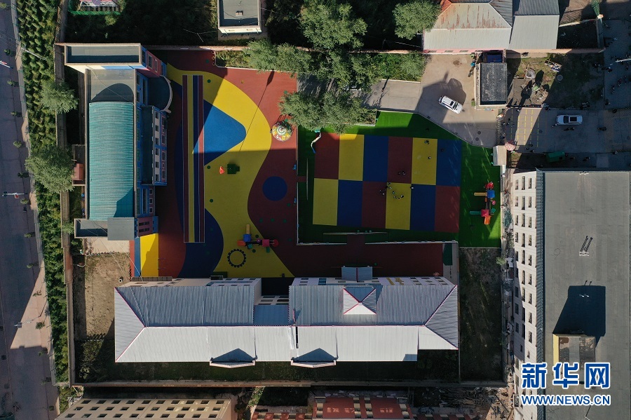 俯瞰拉加鎮中心幼兒園。(新華網潘彬彬 攝)