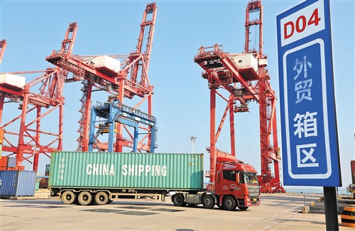 近日,運(yùn)輸車(chē)輛在江蘇連云港集裝箱碼頭轉(zhuǎn)運(yùn)集裝箱準(zhǔn)備裝船出口國(guó)外。 海關(guān)總署發(fā)布的數(shù)據(jù)顯示,今年前8個(gè)月,我國(guó)貨物貿(mào)易進(jìn)出口總值20.05萬(wàn)億元,同比下降0.6%,降幅持續(xù)收窄,接近“轉(zhuǎn)正”。