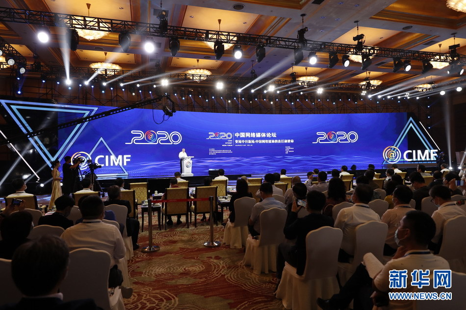 9月27日,由中央網信辦、上海市委網信委、新華通訊社聯合主辦的“2020中國網絡媒體論壇”在上海開幕。來自政府、學界、業界的嘉賓圍繞“變局中開新局:中國網絡媒體的責任與使命”這一核心主題展開深入探討和交流。圖為論壇主題演講現場。新華網 陳杰 攝