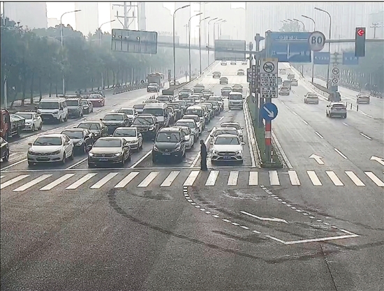 接下來會發生什么呢?通過視頻監控可以看到,東西向的車輛有一部分開始動起來,但老人左手邊三個車道的車都紋絲不動,等著老人安全走過來。
