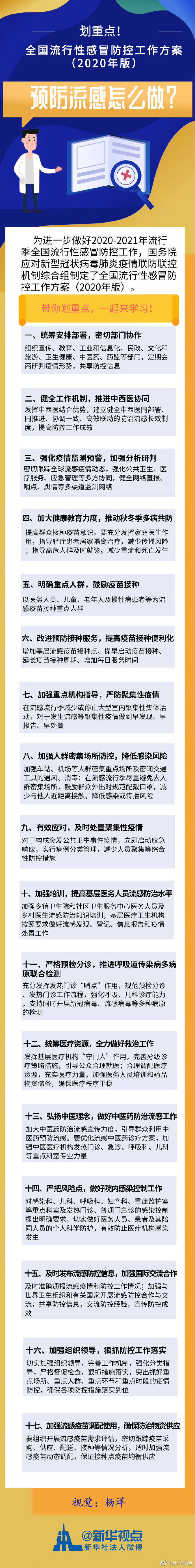 為進一步做好2020-2021年流行季全國流行性感冒防控工作,國務院應對新型冠狀病毒肺炎疫情聯防聯控機制綜合組制定了全國流行性感冒防控工作方案(2020年版),一起來學習! ?????