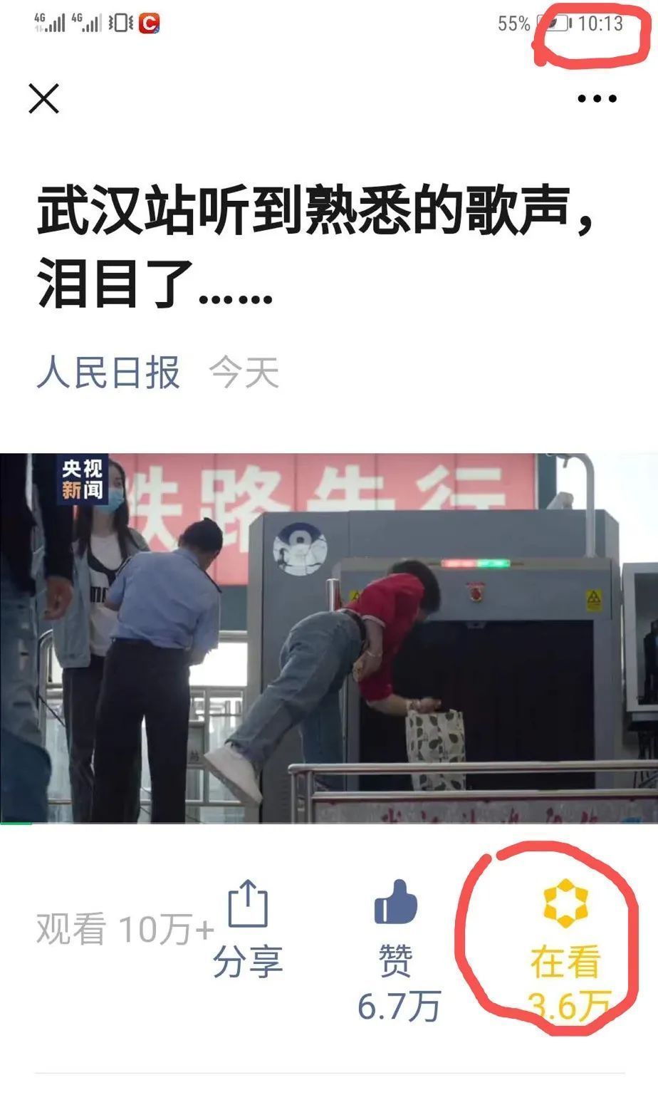 首先是央視的重磅炸彈,簡直一個接一個:早起就被一條《當(dāng)武漢火車站響起熟悉的歌聲……》的快閃新聞?wù)鸬盟查g淚奔。單是那前奏一起,看到如今擠擠挨挨的武漢火車站現(xiàn)場、交織著那曾經(jīng)至暗時刻的回憶,心疼、感動、自豪……種種情愫油然而生!當(dāng)張定宇出現(xiàn)在鏡頭里,畫面定格在“這是英雄的祖國”,那一刻,心真的是知道了什么叫“DUANG”一下!快閃之后,現(xiàn)場群眾最多說到的“不容易”和“安全感”,真是大家的心聲。也正是因為如此,人民日報微信公號16:36轉(zhuǎn)發(fā)這條視頻后,晚上10點剛過,在看量就已經(jīng)達(dá)到3.6萬——人心所向,可見一斑。