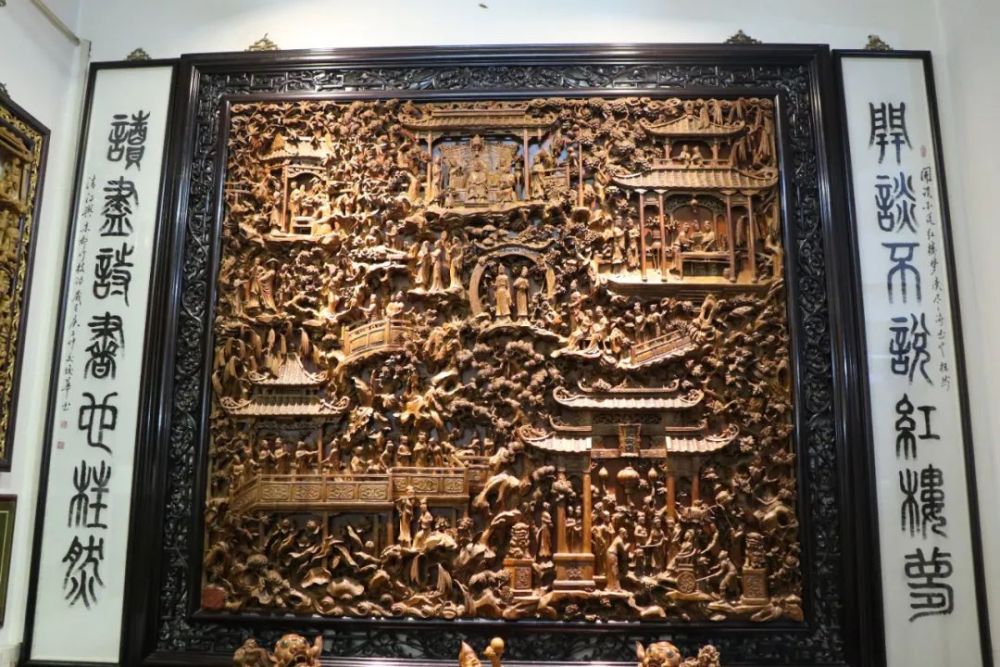 木雕大師金子松創作的素雕作品——《紅樓夢·大觀園》 。新華社記者 孟宜霏 攝