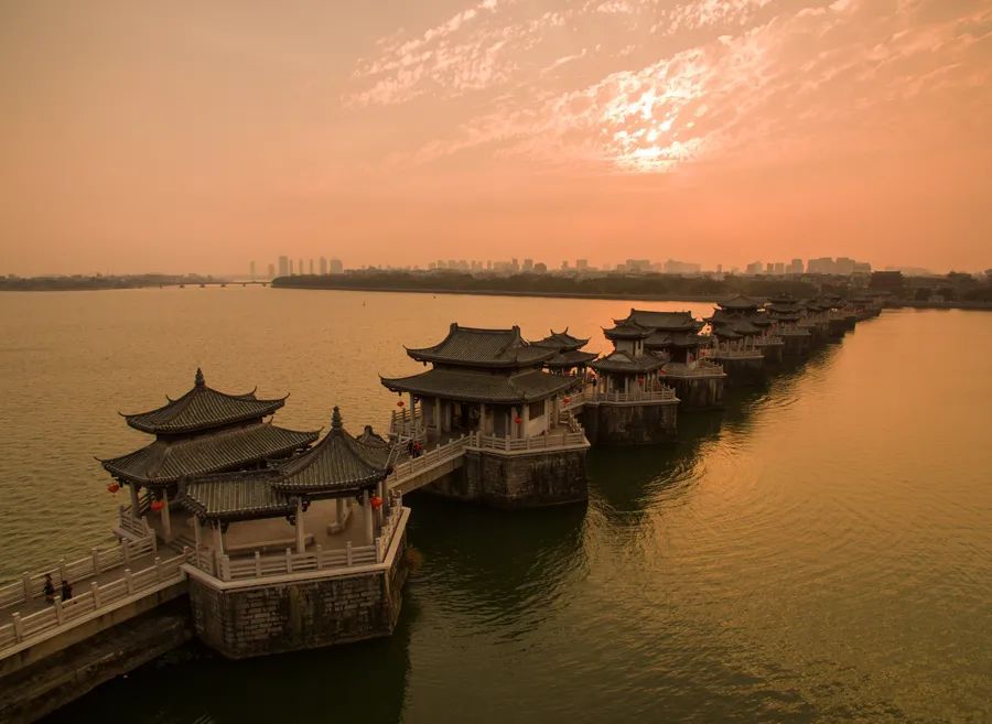 廣東省潮州市韓江上的廣濟橋,廣濟橋是中國乃至世界上最早的啟閉式橋梁。無人機照片 新華社記者 王瑞平 攝