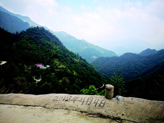 曉天鎮(zhèn)通往山上蘇平村珓子石組的水泥路上刻著修路完工的日期(8月29日攝)。本報記者蔣彤攝