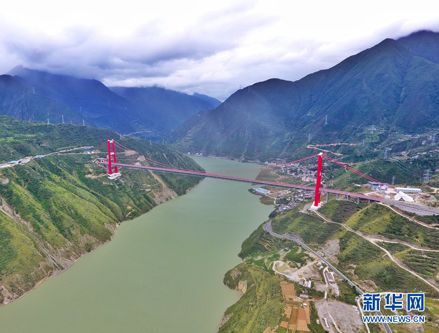 這是雅康高速上橫跨大渡河的大橋(9月16日攝,無人機照片)。新華社記者 劉坤 攝