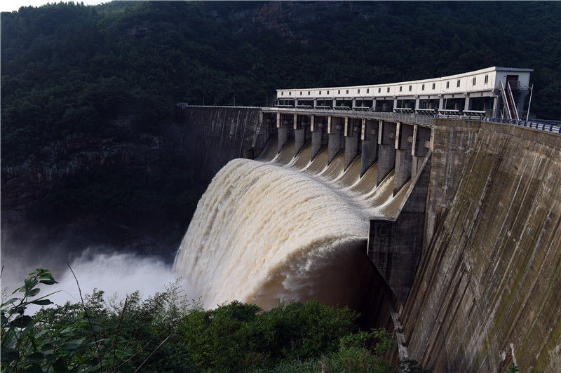 位于安徽省金寨縣的流波水庫(kù)在進(jìn)行泄洪(6月16日攝)。新華社記者 周牧 攝