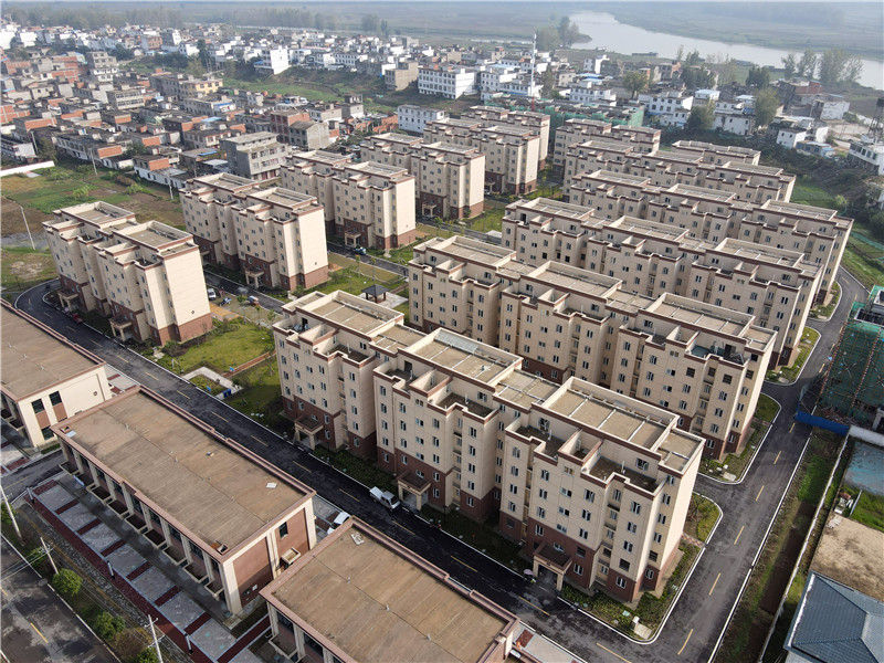 這是位于安徽省阜南縣王家壩鎮(zhèn)淮上社區(qū)的莊臺(tái)疏解降容工程居民安置點(diǎn)(10月16日攝,無(wú)人機(jī)照片)。新華社記者 周牧 攝