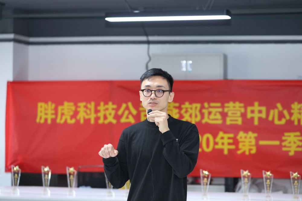 2020年4月,馬成在胖虎燕郊運營中心第一季度精英員工表彰大會上發言。(采訪對象供圖)